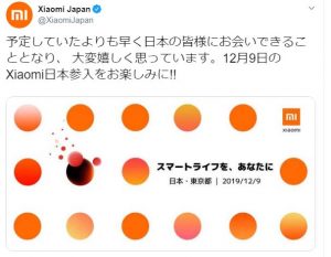 2019年12月2日公式Twitterが発表! どんな形で参入してくるのか!? 本命はスマホ。まさかの家電。 「Mi Note 10」が技適通過との情報ありなので「Mi Note ...