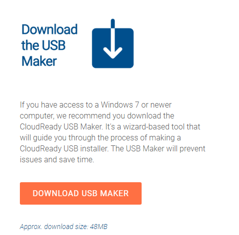 普通ならここで終わりなのですが、実は私はUSBメモリの作成に失敗(USBメモリ書き込み中にCloudready USB Makerが強制的にシャットダウン)していまして、別の方法でCloudreadyの起動USBメモリを作成しました。