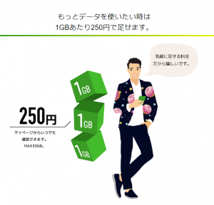 | データ追加 | 1GBあたり250円。30GBまで。 | 1GBあたり500円。 |