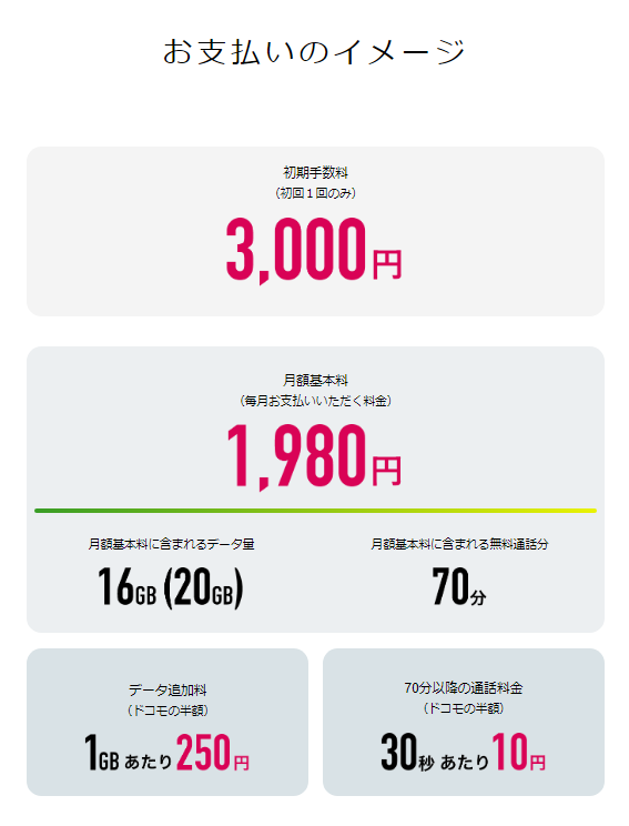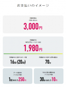 | 提供開始 | 提供中だがdocomo「ahamo」の 提供開始まではデータ通信16GB | 2021年3月 (提供開始日は決まり次第お知らせいたします。) |