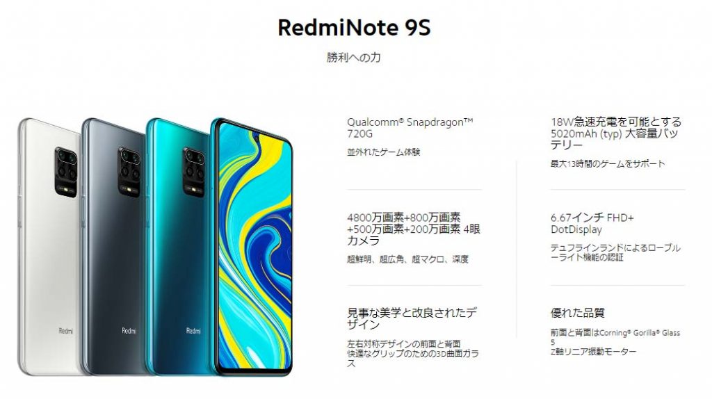 今年のSIMフリー機のランキング上位に、このRedmi Note 9Sが食い込んで来る事を期待やで!