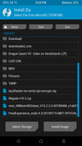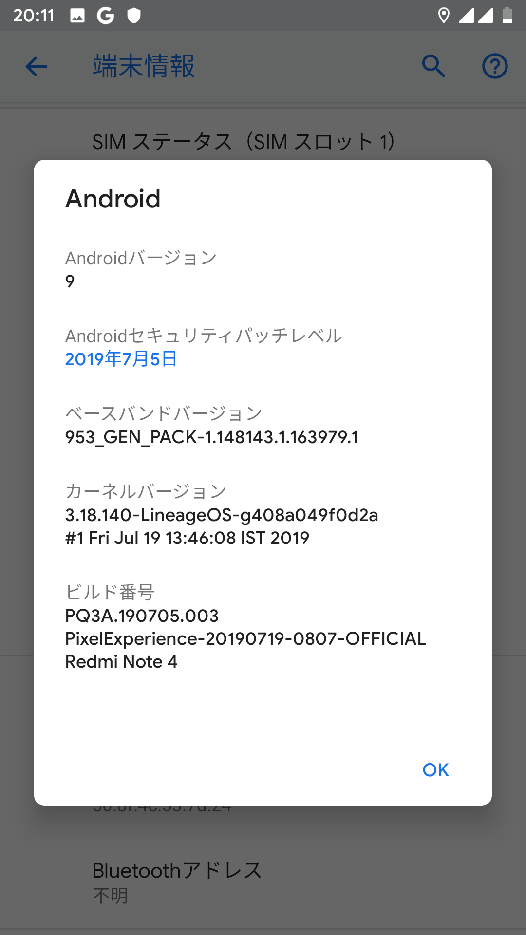 ROM焼き以前はXiaomiの公式ROM MIUI10だったのですがandroidバージョンは7.0。今回焼いたバージョンはPixelExperience android9.0です。