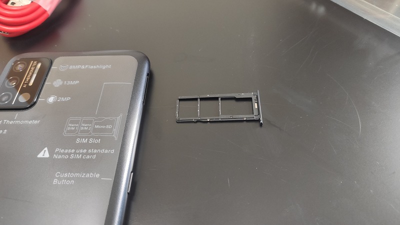 右側にはSIMスロットとオリジナル機能のショートカットキーという物理ボタンが搭載されています。