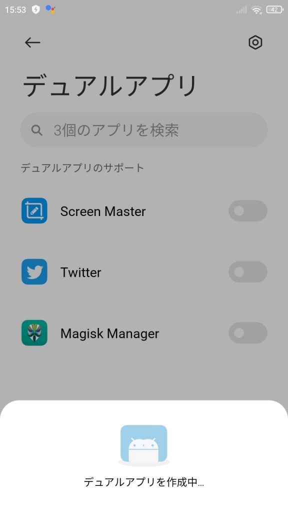 デュアルアプリの設定