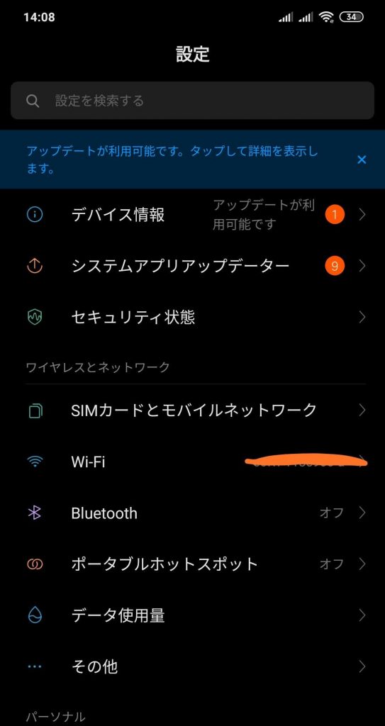 現在はMIUI10なのでMIUI11のアップグレードが通知されています。